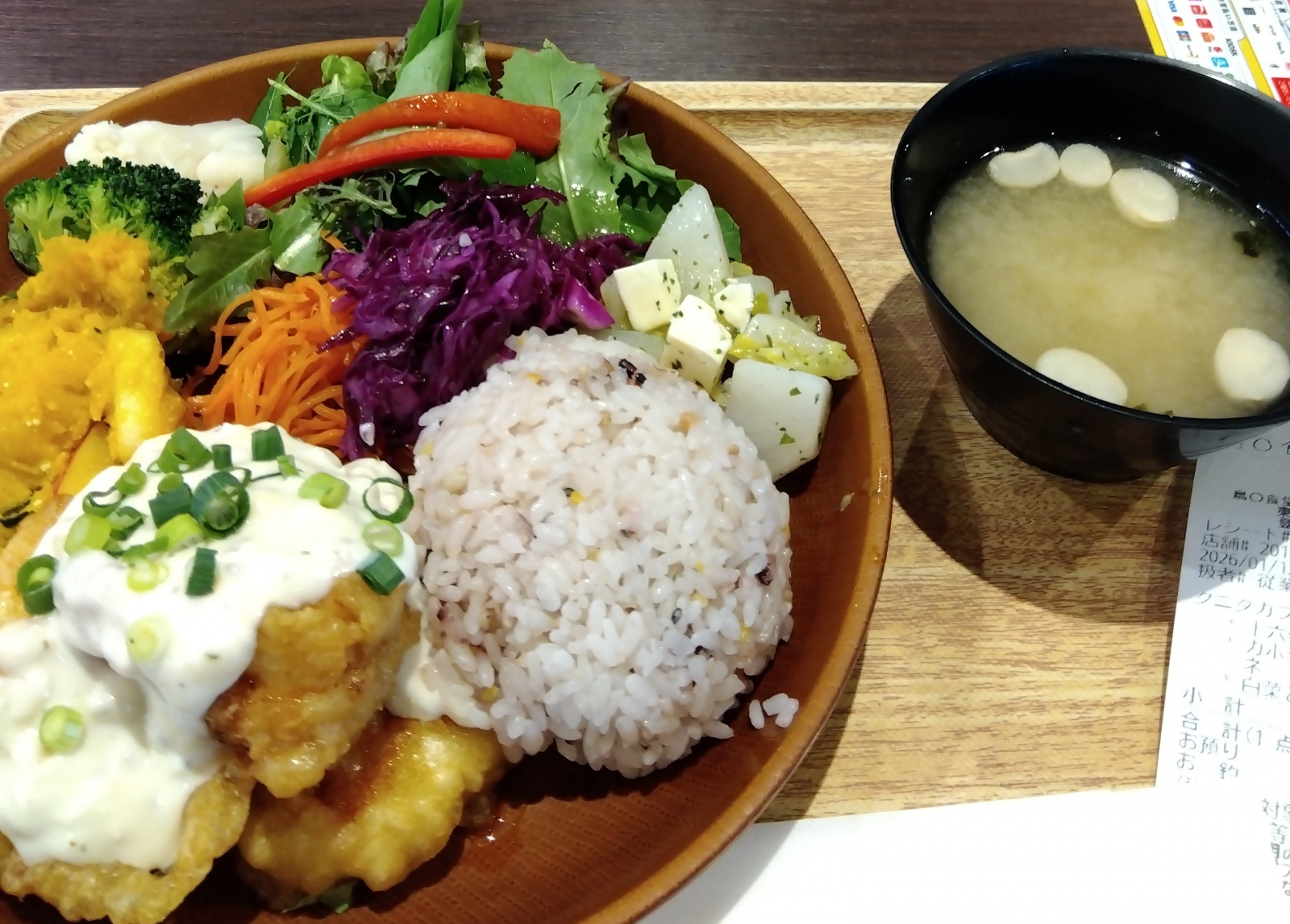 フードコートにタニタ食堂があって、鶏南蛮の定食にしました。
